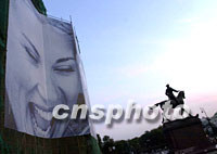 圖:莫斯科紅場(chǎng)廣告畫與銅像 2001年07月12日 15:06 ![]() 莫斯科紅場(chǎng)七月為迎接國(guó)際奧委會(huì)一一二次全會(huì)在此舉行,將正在修繕的古建筑加以遮擋,裝飾在上的巨大廣告頭像與騎馬元帥銅像形成有趣對(duì)照。中新社記者 賈國(guó)榮 攝