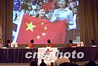 圖:北京申奧代表團(tuán)在新聞發(fā)布會(huì)上放映申辦短片 2001年07月12日 21:29 ![]() 7月12日,五個(gè)奧運(yùn)會(huì)申辦城市在莫斯科斯拉夫酒店召開新聞發(fā)布會(huì)。北京申奧代表團(tuán)放映申辦短片。中新社記者 王瑤 攝