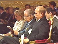 快訊:國際奧委會(huì)第112次會(huì)議在莫斯科開幕 2001年07月12日 23:24 ![]() 開幕式現(xiàn)場 ![]() 俄羅斯總統(tǒng)普京與國際奧委會(huì)主席薩馬蘭奇出席國際奧委會(huì)第112次全會(huì)開幕式