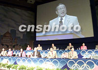圖:國務(wù)院副總理李嵐清作申奧陳述 2001年07月14日 00:20 ![]() 7月13日,國際奧委會112次會議在莫斯科世界貿(mào)易中心舉行會議,表決2008年奧運(yùn)會舉辦城市。圖為中國國務(wù)院副總理李嵐清作申奧陳述。中新社記者 王瑤 攝