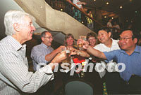 13日北京申奧成功,使旅居北京的許多外國人也十分高興,幾位來自歐洲的客人在飯店祝酒慶賀。中新社記者 王麗南 攝