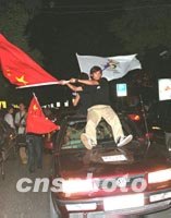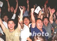 組圖:北京高呼申奧成功 2001年07月14日 07:25 ![]() 在山東省青島市歡慶北京申奧成功的游行隊(duì)伍中,一對(duì)父子情不自禁地?fù)]舞著國(guó)旗,扭著秧歌,為北京喝彩。中新社記者 鄭萍萍 攝 ![]() 十三日晚,北京申奧成功的消息傳來(lái),激動(dòng)的北京市民登上汽車揮舞國(guó)旗,振臂高呼。中新社圖 史利 攝