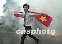 圖:舉國旗在莫斯科歡奔 2001年07月14日 07:26 ![]() 一名中國青年高舉五星紅旗,冒雨在中國駐莫斯科大使館鳴放的鞭炮煙火中狂奔,歡呼北京申辦奧運會成功。中新社記者 賈國榮 攝