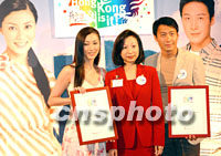 香港旅游發(fā)展局16日在赤柱美利樓委任香港演藝界紅星黎明及李嘉欣為“動(dòng)感之都:就是香港!”大使,推廣香港旅游業(yè)。中新社傳真 洪少葵 攝