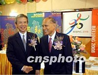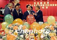 組圖:香港體育界慶祝北京申奧成功 2001年07月18日 10:56 ![]() 香港體育界17日晚舉行盛大聯(lián)歡會(huì),熱烈慶祝北京申辦2008年奧運(yùn)會(huì)成功,全國政協(xié)副主席霍英東與民政事務(wù)局長林煥光出席晚會(huì),共慶中國體壇盛事。中新社傳真 洪少葵 攝 ![]() 全國政協(xié)副主席霍英東、中聯(lián)辦副主任王鳳超、康樂及文化事務(wù)署長梁世華等出席香港體育界17日晚舉行的盛大聯(lián)歡會(huì),熱烈慶祝北京申辦2008年奧運(yùn)會(huì)成功。中新社傳真 洪少葵 攝