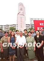 圖文:“海空衛(wèi)士”王偉的塑像在浙江湖州落成 2001年08月02日 06:19 ![]() 中國(guó)“海空衛(wèi)士”王偉塑像落成典禮八月一日在浙江省湖州市鳳凰公園廣場(chǎng)舉行,由花崗巖制作的王偉塑像高10米、寬2.2米、厚2.3米、重約80噸,采用的是南京藝術(shù)學(xué)院青年教師、著名雕塑家李廣玉構(gòu)思的設(shè)計(jì)方案。中新社圖 張全躍 攝 ![]() 中國(guó)“?招l(wèi)士”王偉塑像落成典禮八月一日在浙江省湖州市鳳凰公園廣場(chǎng)舉行,王偉父母王明、王月琴(中)、妻子阮國(guó)琴(右)、姐姐(右四)等親屬與近千名各界群眾和當(dāng)?shù)伛v軍官兵參加了儀式并合影留念。中新社圖 張全躍 攝