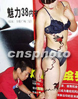 圖:“魅力38內(nèi)衣”人體彩繪 2001年08月03日 17:50 ![]() 北京“魅力38內(nèi)衣”,三日在北京豐聯(lián)廣場開設(shè)京城第二家分店,一名畫師聚由海外公司合作開辦的北京“魅力38內(nèi)衣”,三日在北京豐聯(lián)廣場開設(shè)第二家分店。圖為一名畫師正聚精會神為身穿內(nèi)衣的模特小姐繪畫。中新社記者 錢興強(qiáng) 攝