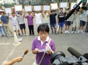 圖文:清華學(xué)子到日本駐華使館抗議小泉參拜 2001年08月15日 16:39 ![]() 法新/圖 ![]() 法新/圖 ![]() 路透/圖 中新網(wǎng)北京8月15日消息:今天上午,約30名清華大學(xué)學(xué)子向日本駐華大使館遞交了抗議書,對日本首相小泉純一郎13日參拜靖國神社一事表示強(qiáng)烈的憤慨。今天是抗戰(zhàn)勝利日本投降五十六周年紀(jì)念日。 目擊者說,約有三十多名清華大學(xué)學(xué)生在日本大使館門前打出“打倒日本帝國主義”的橫幅標(biāo)語,高唱愛國主義歌曲。 一名不愿透露姓名的女學(xué)生高聲宣讀了抗議書:“我們強(qiáng)烈要求日本政府向中國以及其他受過日本侵略的亞洲人民做出正式道歉!” 據(jù)中國日報網(wǎng)站報道,這些學(xué)生在日本大使館外一邊揮舞著沒有任何記號的空白卡片,一邊高呼“打倒日本帝國主義!”“中國人民萬歲!”“你們(日本)再也不可能欺凌中國了!” 一名姓劉的學(xué)生說:“這些空白卡就意味著:對于日本政府的胡說八道,我們覺得沒有什么好說的,他們不值得我們跟他們說話! 目擊者表示,抗議活動克制、有序。守衛(wèi)大使館的警察說,根據(jù)交通規(guī)則他們可以停留十分鐘。 整個示威活動大約進(jìn)行了十五分鐘,隨后,示威學(xué)生乘坐汽車離開了日本大使館。 |