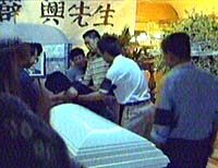圖:薛興親屬馬尼拉痛別親人 2001年08月28日 21:02 ![]() 菲律賓遇害中國(guó)人質(zhì)張忠強(qiáng)、薛興的追悼會(huì)及遺體告別儀式二十八日上午在馬尼拉舉行。圖為薛興親屬在遺體告別儀式上痛別親人。
