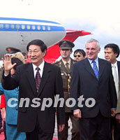 組圖:朱總理抵達(dá)愛(ài)爾蘭進(jìn)行訪問(wèn) 2001年09月03日 10:57 ![]() 中國(guó)總理朱镕基九月二日抵達(dá)都柏林,開(kāi)始對(duì)愛(ài)爾蘭進(jìn)行正式訪問(wèn)。愛(ài)爾蘭總理埃亨前往機(jī)場(chǎng)迎接。中新社記者 孟慶雷 攝 ![]() 正在愛(ài)爾蘭訪問(wèn)的中國(guó)總理朱镕基九月三日在他下榻的國(guó)賓館與愛(ài)爾蘭總理埃亨親切交談。中新社記者 孟慶雷 攝