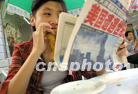 ![]() 十二日晨,美國遭襲后的消息在報(bào)紙刊登后,北京天安門廣場的游客仔細(xì)閱讀有關(guān)消息。中新社記者 錢興強(qiáng) 攝 ![]() 十三日晨,在北京麥當(dāng)勞餐廳前,前來用餐的顧客關(guān)注報(bào)紙上報(bào)道美國遭襲消息。中新社記者 錢興強(qiáng) 攝