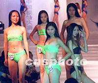 組圖:新絲路模特大賽北京賽區(qū)決賽 2001年09月12日 12:20 ![]() 2001新絲路中國模特大賽可采杯北京賽區(qū)決賽十一日在北京舉行。圖為參賽選手進行泳裝展示。中新社記者 錢興強 攝 ![]() 2001新絲路中國模特大賽可賽杯北京分賽區(qū)決賽,十一日在北京舉行,男選手周雙健和女選手賈妮妮分別榮獲大賽冠軍。中新社記者 錢興強 攝