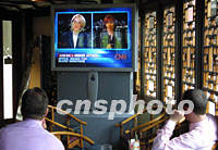 圖:在滬外國(guó)人關(guān)注美國(guó)遭襲事件 2001年09月12日 16:14 ![]() 九月十二日,在上海的外國(guó)人特別關(guān)注美國(guó)遭襲事件。圖為一家酒吧里的老外全神貫注地觀看電視新聞。中新社記者 潘索菲 攝 |
