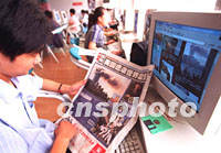 組圖:北京大學(xué)生全面關(guān)注美國“爆炸事件” 2001年09月12日 16:21 ![]() 十一日發(fā)生的美國受襲“爆炸事件”引起北京媒體關(guān)注,十二日一家媒體特意加印號(hào)外,北大學(xué)生午休時(shí)間紛紛搶購。中新社圖 張宇 攝 ![]() 十一日發(fā)生的美國受襲“爆炸事件”引起北京大學(xué)生關(guān)注,十二日中午北京大學(xué)附近近千臺(tái)電腦的網(wǎng)吧內(nèi)座無虛席,一名學(xué)生邊瀏覽網(wǎng)頁,邊翻閱報(bào)刊,全面關(guān)注此次“爆炸事件”。中新社圖 張宇 攝