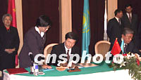 圖文:朱镕基總理結(jié)束訪俄首次踏訪哈薩克斯坦 2001年09月12日 23:00 ![]() 正在哈薩克斯坦訪問的中國總理朱镕基九月十二日在阿斯塔納與哈總理托卡耶夫會(huì)見記者時(shí)表示,世界各國應(yīng)共同努力反對(duì)和制止一切恐怖主義和暴力活動(dòng)。中新社記者 孟慶雷 攝 ![]() 首次訪問哈薩克斯坦共和國的中國總理朱镕基,九月十二日在哈首都阿斯塔納與哈總理托卡耶夫共同簽署中哈聯(lián)合公報(bào)。中新社記者 孟慶雷 攝
