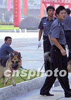 圖:南京建國以來首次施行一級安保 2001年09月16日 15:43 ![]() 第六屆華商大會即將在南京開幕,十六日清晨四只防暴犬在警員的帶領(lǐng)下對主會場進(jìn)行全面勘察,這是南京市建國以來首次實(shí)施國家一級安保措施。中新社記者 鄭萍萍 攝 |