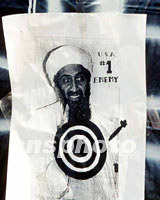 圖:本·拉登成為美國(guó)人泄憤之靶 2001年09月21日 10:52 ![]() 布什總統(tǒng)斷言本·拉登是九一一恐怖襲擊的頭號(hào)嫌犯,“死的活的都要”。紐約街頭一些悼念場(chǎng)所出現(xiàn)帶靶環(huán)的本拉登頭像,以泄心頭之恨。中新社記者 郭健 攝 |