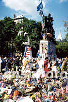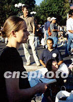組圖:曼哈頓聯(lián)合廣場(chǎng)成公眾悼念場(chǎng)所 2001年09月22日 13:38 ![]() 曼哈頓下城,離世貿(mào)中心不遠(yuǎn)處的聯(lián)合廣場(chǎng),“九一一”以來(lái)成為紐約客悼念死難者的場(chǎng)所。這里遍地是花束、燭臺(tái)、國(guó)旗和失蹤者的像片,整日人來(lái)人往,昔日各種街頭露天表演不復(fù)見(jiàn)。中新社記者 郭健 攝 ![]() 自發(fā)悼念“九一一”遇難者是眼下紐約的特殊景觀。這位女畫(huà)家正在作現(xiàn)場(chǎng)速寫(xiě)。中新社記者 郭健 攝
