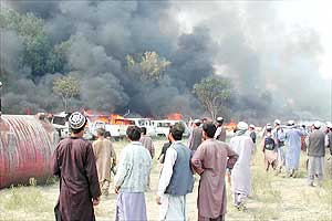 圖文:阿富汗反美大示威中有12名警察受傷 2001年09月27日 11:10 ![]() 示威者圍觀美國(guó)大使館內(nèi)狂燒的車子。路透社 圖 中新網(wǎng)香港9月27日消息:幾千名阿富汗示威者昨天闖入美國(guó)駐阿富汗大使館,放火焚燒遭丟棄的汽車,火勢(shì)波及大使館的外圍建筑,但主樓并未受破壞。 塔利班士兵同大使館內(nèi)外暴亂的示威者發(fā)生沖突,消防員最終把火勢(shì)控制住。喀布爾警察首腦尤努斯說(shuō),12名警察在設(shè)法控制暴亂時(shí)受傷。他說(shuō):“我們盡力避免這樣的事情發(fā)生,但示威者的人數(shù)使我們不可能成功。他們有幾千人。” 38歲的示威者烏拉說(shuō),示威的目的是向美國(guó)發(fā)出信號(hào)。“我們干得好!边@名店主說(shuō),“美國(guó)要燒掉我們的國(guó)家,所以我們焚燒他們的大使館! 美國(guó)駐阿富汗大使館自1989年起就無(wú)人駐守,只保留了一些阿富汗雇員負(fù)責(zé)維修等有限的工作。據(jù)悉,這次示威是美國(guó)遭襲以來(lái)喀布爾發(fā)生的最大規(guī)模反美事件。 |