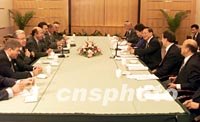 組圖:唐家璇會(huì)見俄羅斯外長(zhǎng)伊萬諾夫 2001年10月17日 11:19 ![]() 中國(guó)外交部長(zhǎng)唐家璇十七日在上海國(guó)際會(huì)議中心會(huì)見前來參加亞太經(jīng)合組織(APEC)會(huì)議的俄羅斯外長(zhǎng)伊萬諾夫。中新社記者 毛建軍 攝 ![]() 中國(guó)外交部長(zhǎng)唐家璇十七日在上海國(guó)際會(huì)議中心會(huì)見前來參加亞太經(jīng)合組織(APEC)會(huì)議的俄羅斯外長(zhǎng)伊萬諾夫。中新社記者 毛建軍 攝