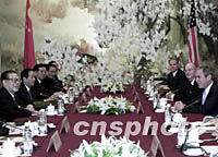 組圖:江澤民主席會(huì)見(jiàn)美國(guó)總統(tǒng)布什 2001年10月19日 13:40 ![]() 10月19日,國(guó)家主席江澤民在上海西郊賓館會(huì)見(jiàn)美國(guó)總統(tǒng)布什。中新社圖 ![]() 10月19日,中國(guó)國(guó)家主席江澤民在上海與美國(guó)總統(tǒng)布什舉行會(huì)談。中新社圖