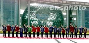 組圖:亞太經(jīng)合組織經(jīng)濟體領(lǐng)導(dǎo)人合影 2001年10月22日 09:44 ![]() 10月21日,參加亞太經(jīng)合組織第九次領(lǐng)導(dǎo)人非正式會議的經(jīng)濟體領(lǐng)導(dǎo)人在上海科技館樓前合影。圖為中國國家主席江澤民在合影時向在場記者揮手致意。中新社圖 ![]() 10月21日,參加亞太經(jīng)合組織第九次領(lǐng)導(dǎo)人非正式會議的經(jīng)濟體領(lǐng)導(dǎo)人在上?萍拣^樓前合影。中新社圖