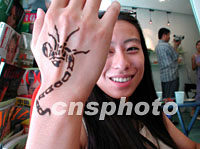 圖:京城美女鐘情毒蝎體繪 2001年11月11日 10:52 ![]() 一位北京小姐周末到尚吉體繪店請人在她手背繪上毒蝎圖案,據(jù)店員介紹這種毒蝎標(biāo)志在京城時(shí)尚美女中頗為流行。中新社圖 陳峰 攝 |