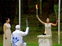 圖:美國鹽湖城冬奧會火炬在希臘點(diǎn)燃 2001年11月20日 16:12 ![]() 2002年美國鹽湖城冬季奧林匹克運(yùn)動會火炬19號在希臘的奧林匹亞山上點(diǎn)燃,希臘女演員塔利亞·普羅科皮約裝扮的希臘女神手捧奧運(yùn)圣火火種,開啟了慶典儀式。
