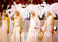 圖:百余名模九運(yùn)閉幕式上進(jìn)行時(shí)裝表演 2001年11月26日 11:48 ![]() 二十五日晚,百余名模特在九運(yùn)會(huì)閉幕式大型文藝晚會(huì)上表演時(shí)裝《彩云追月》。中新社記者陳文攝 |