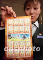 圖:國(guó)家郵政局11日發(fā)行中國(guó)入世紀(jì)念郵票 2001年12月10日 17:21 ![]() 國(guó)家郵政局將于十一日發(fā)行中國(guó)入世紀(jì)念郵票一枚,面值0.8元人民幣。中新社記者 史利 攝 |