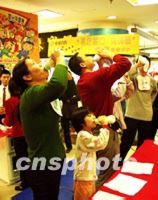 圖:搞促銷廣州商家舉行“吮”奶擂臺賽 2002年01月12日 19:17 ![]() 節(jié)假日是商家做“秀”搞促銷的黃金時段。周六,廣州中華廣場舉行了一場“瘋狂‘吮’奶擂臺爭霸賽”,吸引了不少自認為飲量驚人的顧客前來參賽。圖為男女老幼同場較量。中新社圖 羅仰明 攝 |