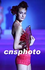 圖:香港時(shí)裝節(jié)展示網(wǎng)狀女內(nèi)衣 2002年01月17日 19:47 ![]() 香港時(shí)裝節(jié)1月17日舉行女式內(nèi)衣表演專場(chǎng),歐洲模特在幽藍(lán)的燈光下展示一款香港設(shè)計(jì)師設(shè)計(jì)的網(wǎng)狀粉紅女內(nèi)衣。中新社傳真 任晨鳴 攝 |