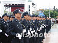 圖:廣東肇慶警方舉行嚴(yán)打誓師大會 2002年01月20日 18:24 ![]() 20日,廣東肇慶警方在該市市區(qū)牌坊廣場舉行嚴(yán)打誓師大會,一千三百多名警察組成四個方隊,并同時展示了百余輛各類警用車輛和各種警械裝備。中新社圖 黃耀輝 攝 |