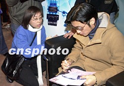 圖:歌星謝霆鋒為女記者簽名 2002年01月24日 19:04 ![]() 歌星謝霆鋒24日在香港舉行最新廣東話專輯“ME”發(fā)布會,除吸引大批傳媒采訪之外,更使女記者要求霆鋒在新專輯“ME”封套上簽名。中新社傳真 鄧慶樂 攝 |