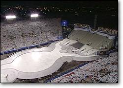 圖文:第十九屆冬奧會如期在美國鹽湖城開幕 2002年02月09日 10:29 ![]() 冬奧會開幕式俯瞰 中新網(wǎng)北京2月9日消息:盡管剛剛經(jīng)過一場大雪,氣候惡劣,但第19屆冬奧會還是如期于當?shù)貢r間周五晚間9時(北京時間今天上午10時)在美國猶他州鹽湖城如期舉行。 美國總統(tǒng)布什和國際奧委會主席羅格出席在鹽湖城萊斯-埃克爾斯奧林匹克運動場舉行的開幕式。布什莊嚴宣布說:“我宣布鹽湖城運動會召開。我宣布冬奧會開幕”。 剛剛在紐約世貿廢墟中挖掘出的殘損美國國旗在萊斯-?藸査箠W林匹克運動場冉冉升起。人們的歡聲笑聲連成一片。