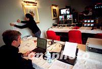 組圖:中外媒體聚焦美國總統(tǒng)布什訪華 2002年02月20日 14:44 ![]() 二十日,專程來京采訪美國布什總統(tǒng)訪華的美國電視聯(lián)合記者采訪團(tuán)(US TV POOL),已在北京香格里拉飯店安營扎寨。中新社記者 史利 攝 ![]() 二十日,在北京香格里拉飯店設(shè)立的中方新聞中心,中國記者們正在精心策劃,周密布置。一場采訪美國布什總統(tǒng)訪華的新聞大戰(zhàn)即將開始。中新社記者 史利 攝