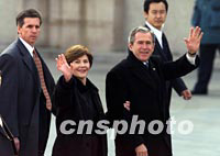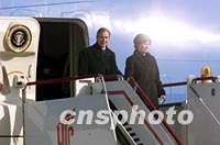 組圖:美國(guó)總統(tǒng)布什抵達(dá)北京 2002年02月21日 11:10 ![]() 美國(guó)總統(tǒng)布什乘坐的“空軍一號(hào)”二十一日上午降落在北京首都國(guó)際機(jī)場(chǎng)。中新社記者 毛建軍 攝 ![]() 美國(guó)總統(tǒng)布什與夫人二十一日上午乘專機(jī)抵達(dá)北京首都國(guó)際機(jī)場(chǎng),開始為期兩天的工作訪問(wèn)。中新社圖 毛建軍 攝