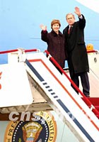 圖文:“空軍一號”騰空 布什結(jié)束訪華離京回國 2002年02月22日 16:26 ![]() 美國總統(tǒng)布什和夫人二十二日下午在北京登上空軍一號招手告別,結(jié)束中國之行。中新社記者 賈國榮 攝