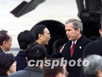 圖:駐美大使楊潔篪為布什送行 2002年02月22日 18:30 ![]() 美國總統(tǒng)布什二十二日下午結(jié)束對中國為期兩天的工作訪問后,乘專機離開北京。中國駐美大使楊潔篪等前往機場送行。中新社記者 滿會喬 攝