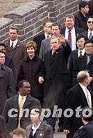 圖:布什與夫人在八達(dá)嶺長(zhǎng)城 2002年02月22日 19:26 ![]() 美國(guó)總統(tǒng)布什與夫人勞拉二十二日下午在警衛(wèi)和陪同人員簇?fù)硐,興致勃勃地登上北京八達(dá)嶺長(zhǎng)城。中新社記者 毛建軍 攝