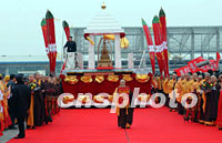 組圖:佛指舍利赴臺灣地區(qū)瞻禮恭送法會 2002年02月23日 17:21 ![]() 法門寺佛指舍利赴臺灣地區(qū)瞻禮(供奉)恭送法會, 二十三日在西安咸陽國際機場舉行。中新社記者 錢興強 攝 ![]() 二十三日西安咸陽機場法旗飄飄、云香繚繞,兩岸眾僧恭送法門寺佛指舍利赴臺灣地區(qū)瞻禮(供奉)。 中新社記者 錢興強 攝