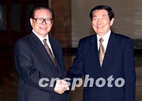圖:江澤民離京出訪越南 朱镕基等送行 2002年02月27日 16:40 ![]() 中國(guó)國(guó)家主席江澤民二十七日離開北京前往越南訪問(wèn),國(guó)務(wù)院總理朱镕基等在北京人民大會(huì)堂送行。中新社記者 毛建軍 攝