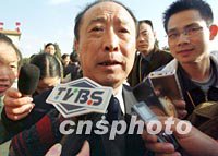 圖:浙江代表談足球黑哨 2002年03月05日 15:53 ![]() 九屆全國人大五次會(huì)議五日在北京人民大會(huì)堂召開。浙江代表陳繼來被記者包圍,就中國足球假球、黑哨以及司法介入等問題回答記者提問。中新社記者 張宇 攝