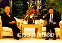 ![]() 中國總理朱镕基七日在北京人民大會(huì)堂香港廳,會(huì)見剛剛連任香港特別行政區(qū)第二任行政長官的董建華先生。中新社記者 賈國榮 攝