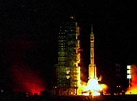 圖:“神舟三號”實驗飛船順利發(fā)射升空 2002年03月26日 11:02 ![]() 二十五日晚十點十五分,中國自主研制的“神舟三號”實驗飛船在酒泉衛(wèi)星發(fā)射中心順利升空。