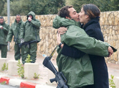 圖:以色列士兵與女友分別前相擁而吻 2002年04月03日 14:17 圖為色列士兵與女友相擁而吻 起火的教堂 在耶路撒冷市和西岸城市伯利恒之間地一處檢查站,一名以色列士兵與女友相擁而吻。以軍進(jìn)入了古城伯利恒,并向教堂開火,一名神父被殺,另外六名修女受傷。法新圖