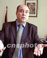 圖:巴勒斯坦駐華大使談巴以沖突 2002年04月03日 20:23 ![]() 巴勒斯坦駐華大使薩法里尼三日在北京的大使館向采訪他的媒體記者說:他前兩天在與阿拉法特主席通電話時,阿拉法特表示必須斗爭到底,決不屈服。在談到近日巴以沖突的形勢時說:目前,國際社會已經(jīng)開始發(fā)揮作用,承擔(dān)他們的責(zé)任。中新社圖 李剛 攝