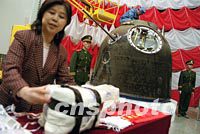 “神舟”三號返回艙開艙 太空“乘客”逐一亮相 2002年04月04日 16:20 ![]() “神州三號”飛船返回艙搭載物品開艙交接儀式,4日在中國空間技術研究院北京空間技術研制試驗中心舉行,解放軍總裝備部,中科院,中國航天科技集團公司等各界相關人士出席了交接儀式。中新社記者 王瑤 攝