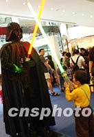 圖:星球大戰(zhàn)的黑武士吸引小童注目 2002年04月08日 15:37 ![]() 在香港太古城舉行的“樂高動感繽紛SHOW”上,星球大戰(zhàn)的黑武士人物造型,吸引小童注目。中新社圖 洪少葵 攝