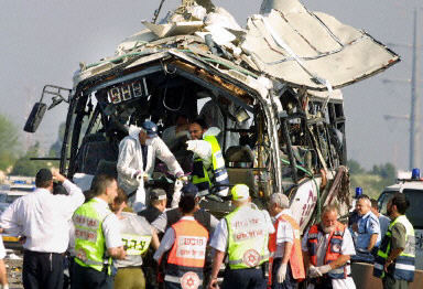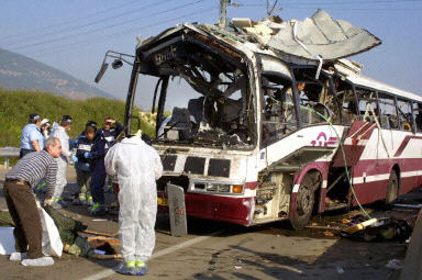 多圖:海法發(fā)生汽車炸彈爆炸事件 哈馬斯宣布負(fù)責(zé) 2002年04月10日 17:01 ![]() 以色列警方在檢查爆炸汽車的殘骸 ![]() 救援人員將遇難者尸體從汽車殘骸內(nèi)抬出 中新網(wǎng)北京4月10日消息:當(dāng)?shù)貢r間4月10日早(北京時間10日中午),以色列北部港口城市海法發(fā)生一起自殺爆炸事件,至少造成10人死亡,另有20人受傷。 爆炸發(fā)生在一輛公共汽車上,這輛車是從海法開往耶路撒冷的。以色列方面稱此次爆炸為“恐怖襲擊”,哈馬斯組織已經(jīng)宣布對此次爆炸事件負(fù)責(zé)。 爆炸發(fā)生前幾小時,以軍曾于黎明時分向約旦河西岸最大城市納布盧斯的巴勒斯坦難民營發(fā)動進(jìn)攻,現(xiàn)場可見煙火沖天,以軍炮火、重機(jī)槍頻頻開火,以軍直升機(jī)也發(fā)射了多枚導(dǎo)彈。杰寧也發(fā)生了交火。 爆炸給海法帶來巨大恐慌,3月31日,海法一家餐廳就曾發(fā)生一起自殺性爆炸事件,造成16人喪生。昨晚,以軍士兵在約旦河西岸城市杰寧的難民營遭到伏擊,13人喪生,9人受傷。這是近18個月來以色列方面發(fā)生的最嚴(yán)重單起傷亡事件。以色列總理沙龍隨后稱,以軍在約旦河西岸的軍事行動將繼續(xù),直到將巴勒斯坦武裝分子徹底鏟除。(春風(fēng))